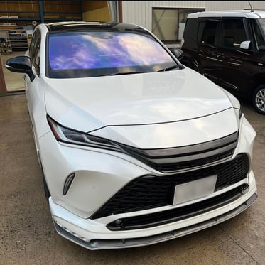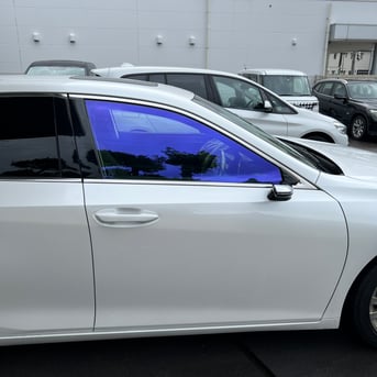 青~青紫発色 可視光線透過率が高く、多くの車種(ガラス)に保安基準内で施工が可能です。当店の場合だと主に前述のPIRML90で保安基準内の透過率が確保できない場合に使用しています。